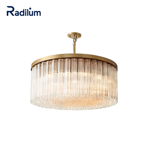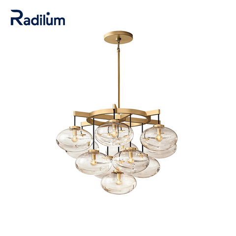 All'ingrosso lampadario in ottone di metà secolo stratificato in vetro opalino a coste per sala da pranzo di lusso Hotel Lobby di transizione residenziale