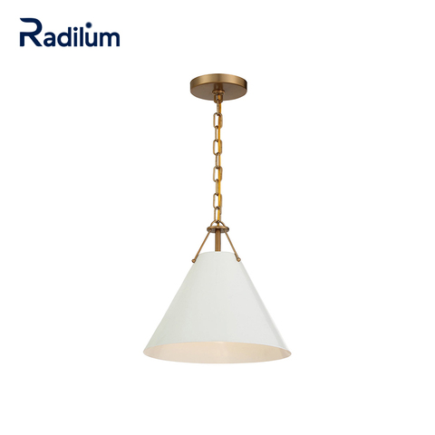 Xavier lampada a sospensione elegante in ottone e cono bianco luce a sospensione per sala da pranzo, cucina o soggiorno