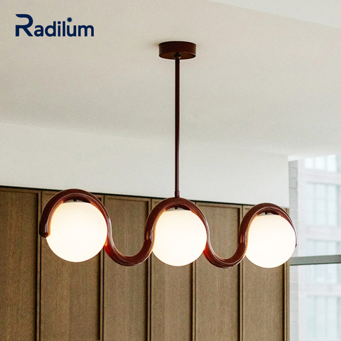 Lenox Linear lampadario scultoreo ondulato bar ciondolo con opale globi di vetro, moderna dichiarazione di Memphis per la cucina isola di illuminazione
